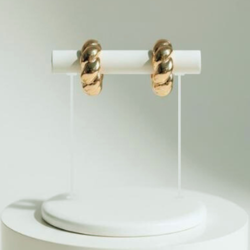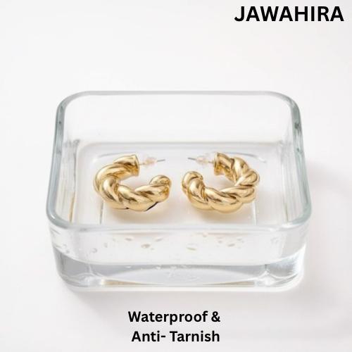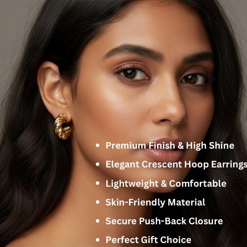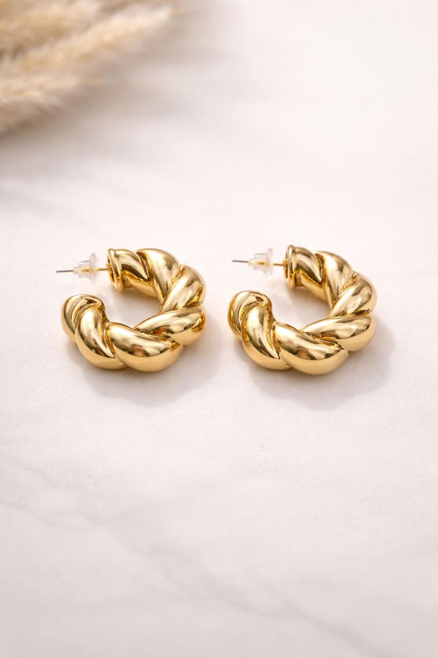 TwistDazzle – Ye golden hoops sirf accessory nahi, ek attitude hain! Unka bold twisted design aur dazzling shine har outfit ko next level tak le jata hai. Rakho casual ya chic – yeh hoops har look mein full glow aur confidence le aate hain.